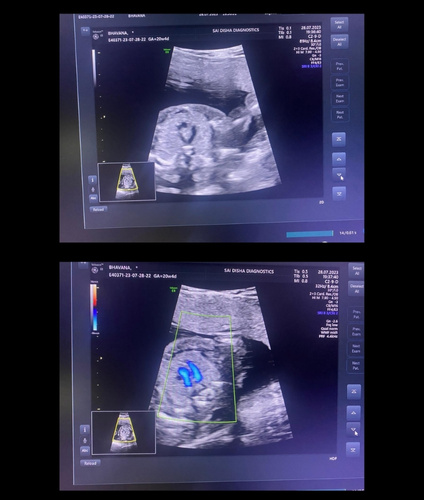 An ultrasound scan, also known as sonography, is a safe and non-invasive diagnostic procedure that uses sound waves to produce real-time images of the inside of the body. Unlike X-rays or CT scans, ultrasound does not use any radiation, making it especially suitable for monitoring pregnancies and for routine diagnostic imaging. During the procedure, a special gel is applied to the skin, and a device called a transducer is gently moved over the area of interest. The sound waves travel into the body and bounce back to create clear images of organs, tissues, and blood flow and fetus inside pregant mother.